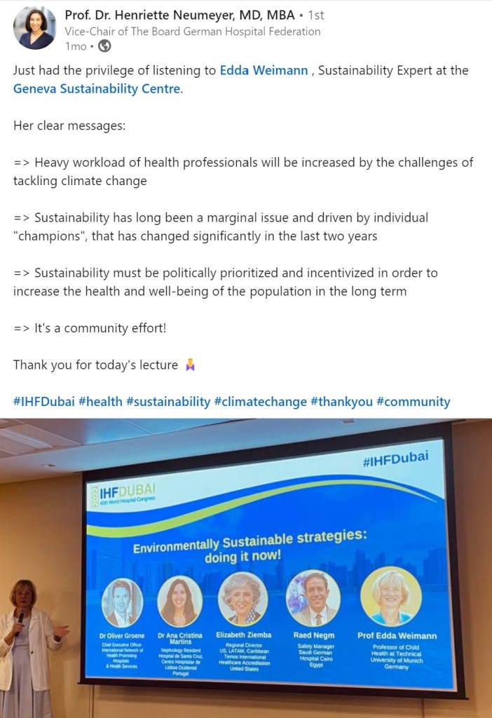 Sustainablity in healthcare is a rapidly evolving field. I had the honour to chair an exciting and inspiring session at the World Hospital Conference together with a highly engaging audience.