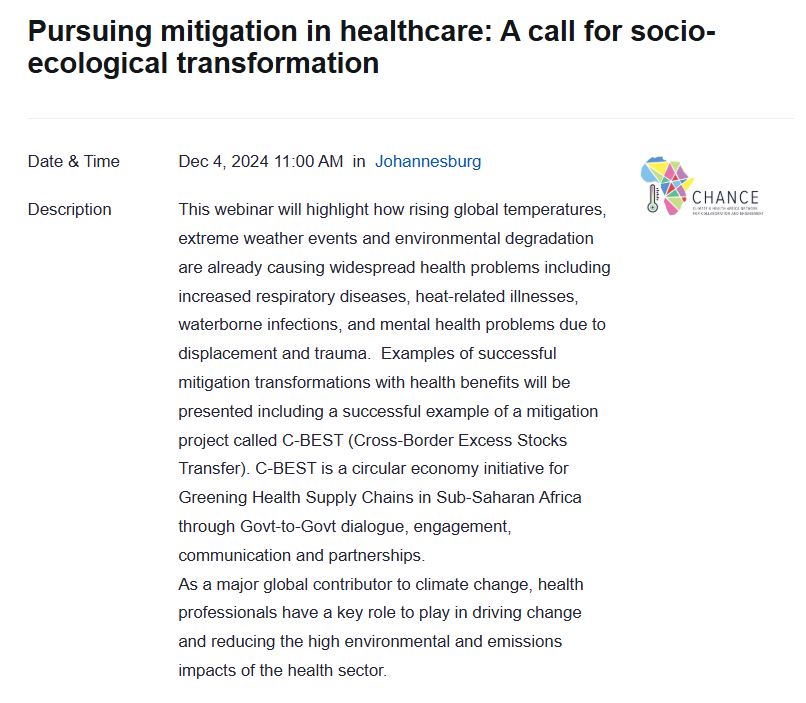 I am honoured to contribute to this high-level conference and to be a panellists outlining how hospitals can become climate leaders. I hope it will inspire others to embark on this rewarding journey to net-zero. Together we can do it! But it must be now!